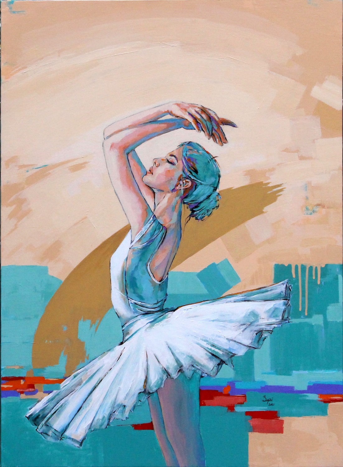 From my “Ballet” series, painting on gallery-wrapped canvas, signed on the front, ready to hang with wire on the back- acrylic painting on canvas. 2021